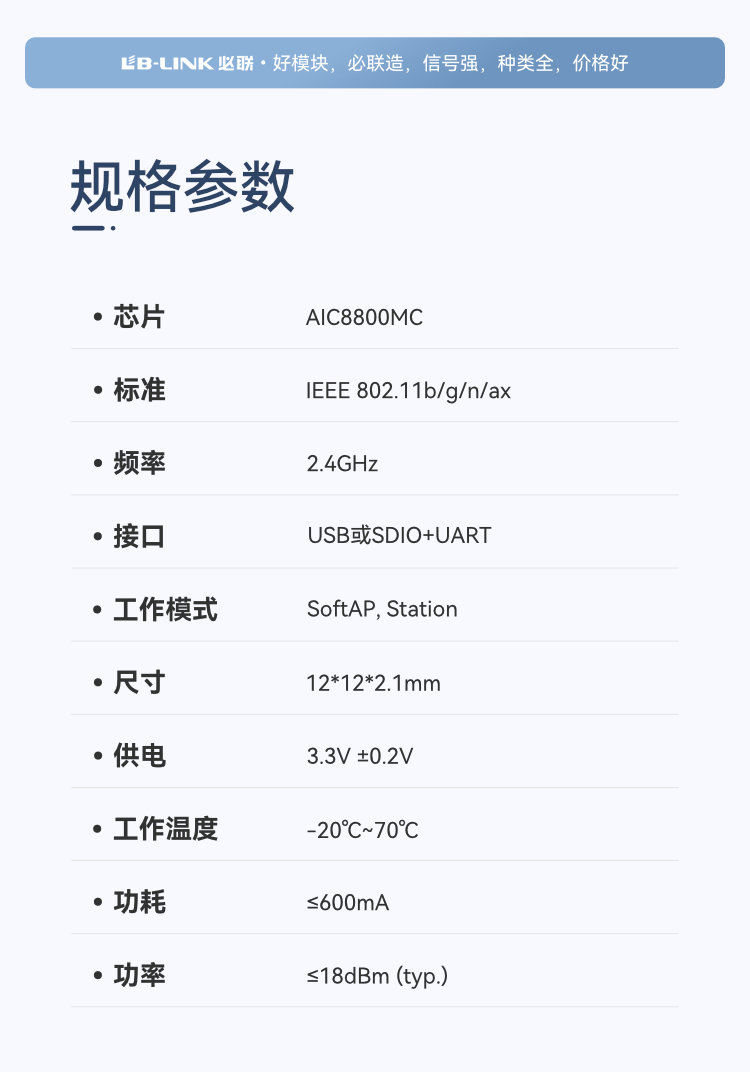 1T1R 802.11b/g/n/ax WiFi+B5.2模组